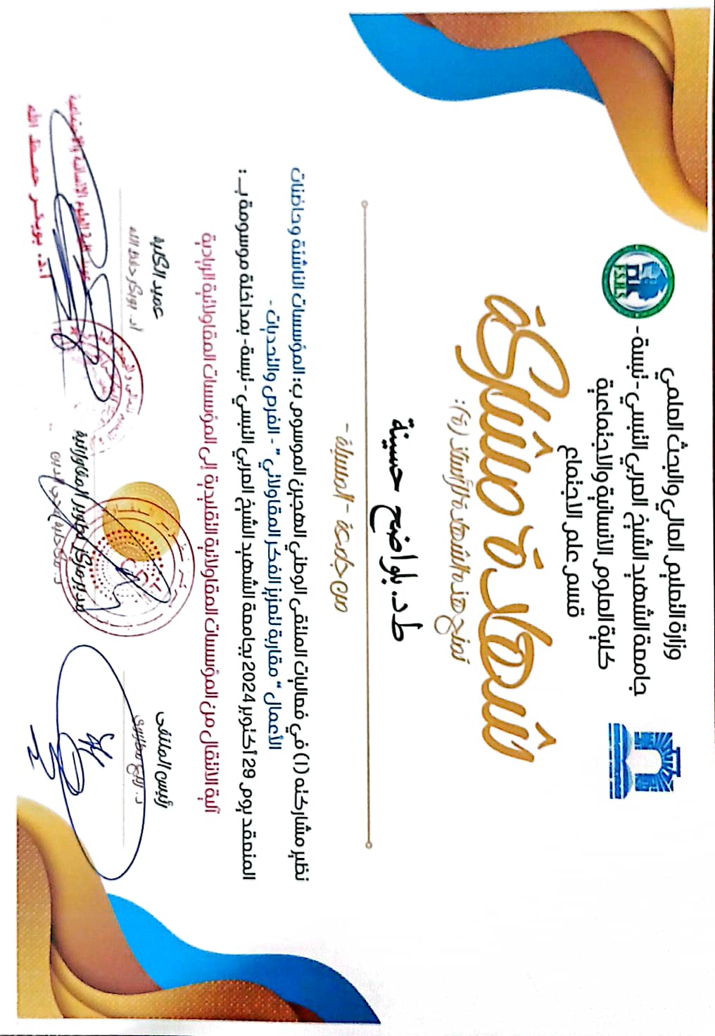 Hassina BELOUADAH , Makhlouf Nadjeh , ,(2023-11-10), نماذج عربية وعالمية في ريادة الأعمال الاجتماعية,الملتقى الوطني الحضوري والإفتراضي حول "ريادة الأعمال الاجتماعية في الجزائر بين الفُرص، المُمارسات، التحدّيات والآفاق",جامعة الجيلالي بونعامة خميس مليانة