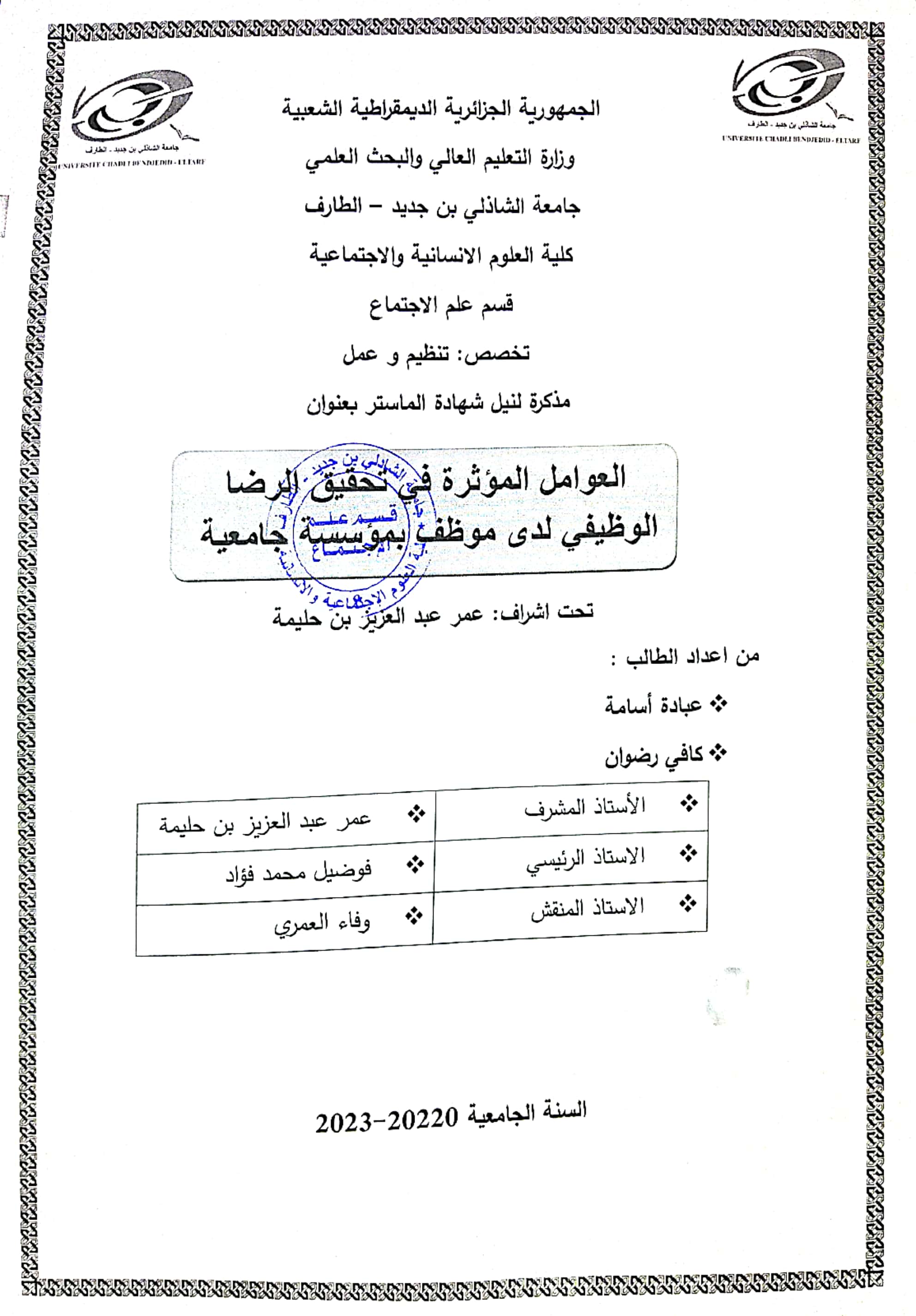 OMAR ABDELAZIZ Benhalima , ,(2022-11-30), دور العلوم الاجتماعية في تحقيق الامن النفسي والاجتماعي في الوسط التربوي والمهني,دور العلوم الاجتماعية في تحقيق الامن النفسي والاجتماعي في الوسط التربوي والمهني,جامعة محمد بوضياف المسيلة