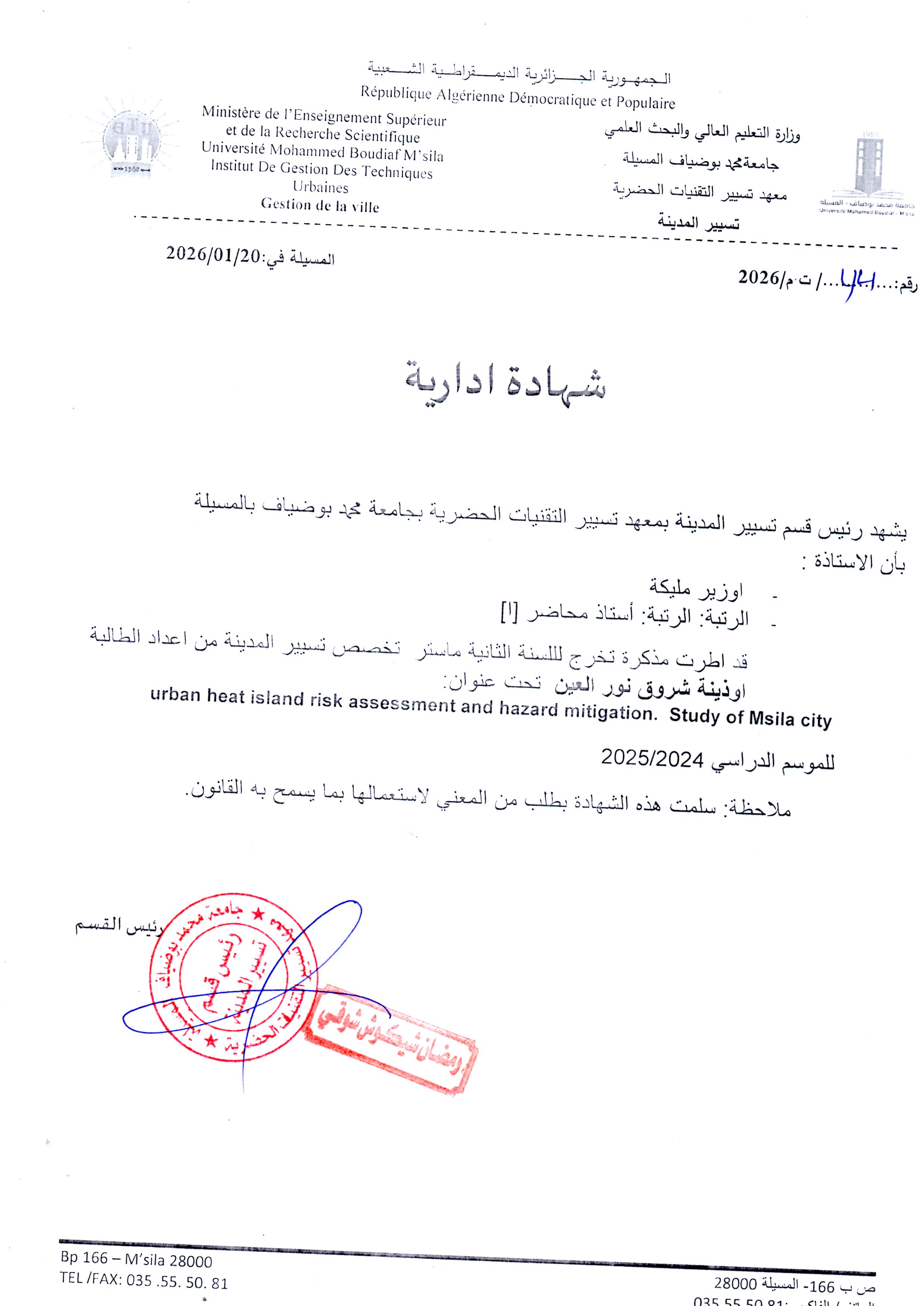 malikaouzir , ,(2023); mobilité et transport,university of Msila,