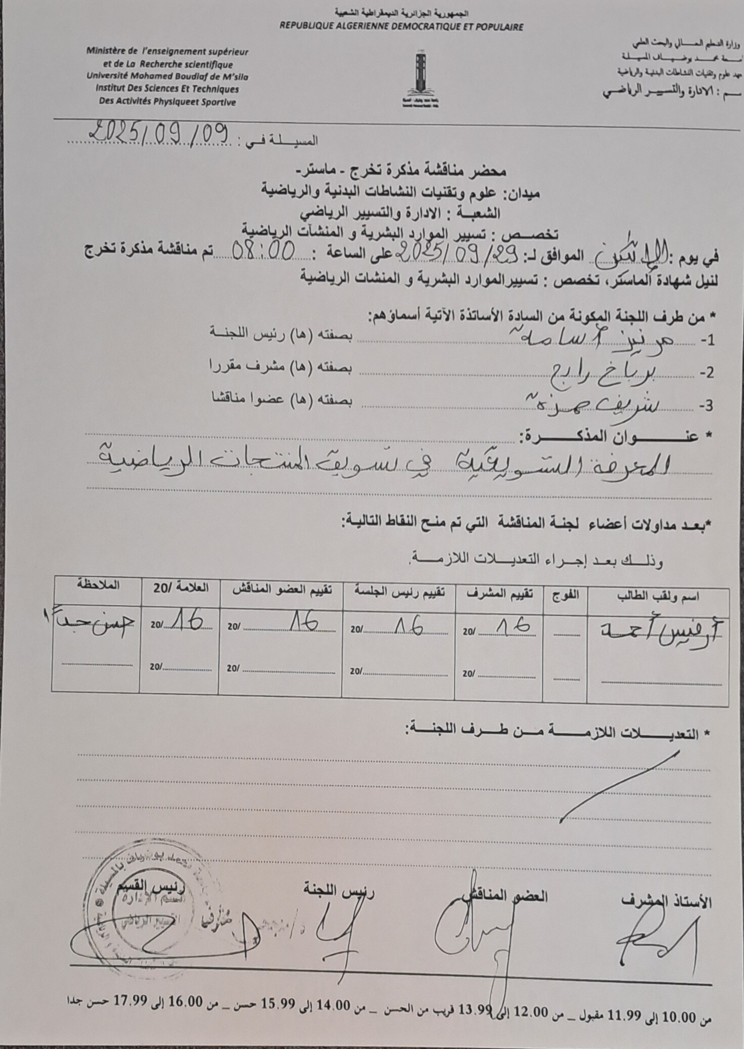 العدالة التنظيمية و علاقتها بالأداء الوظيفي لدى إطارات مدرية الشباب و الرياضية بالمسيلة تخصص إدارة وتسيير رياضي