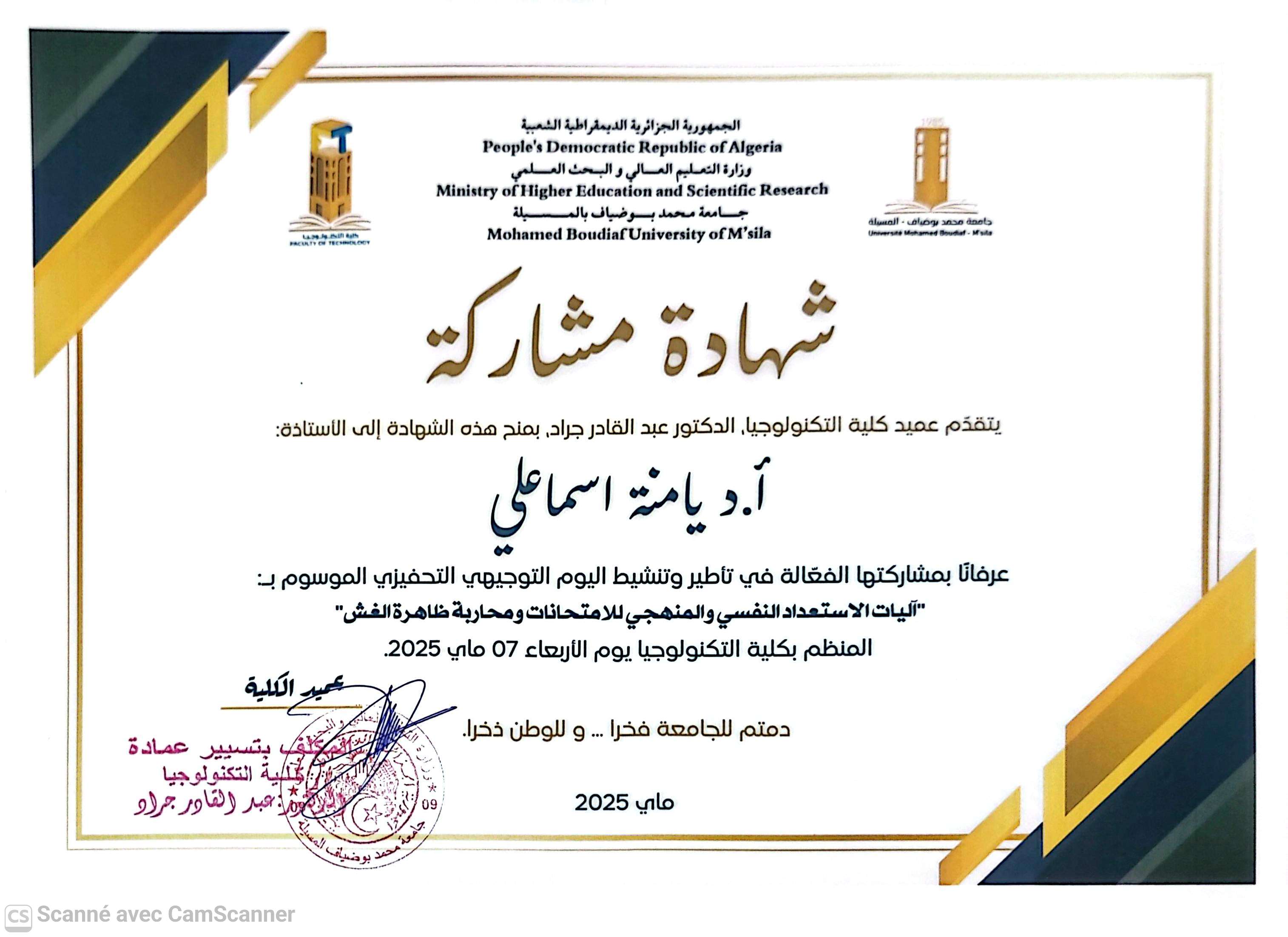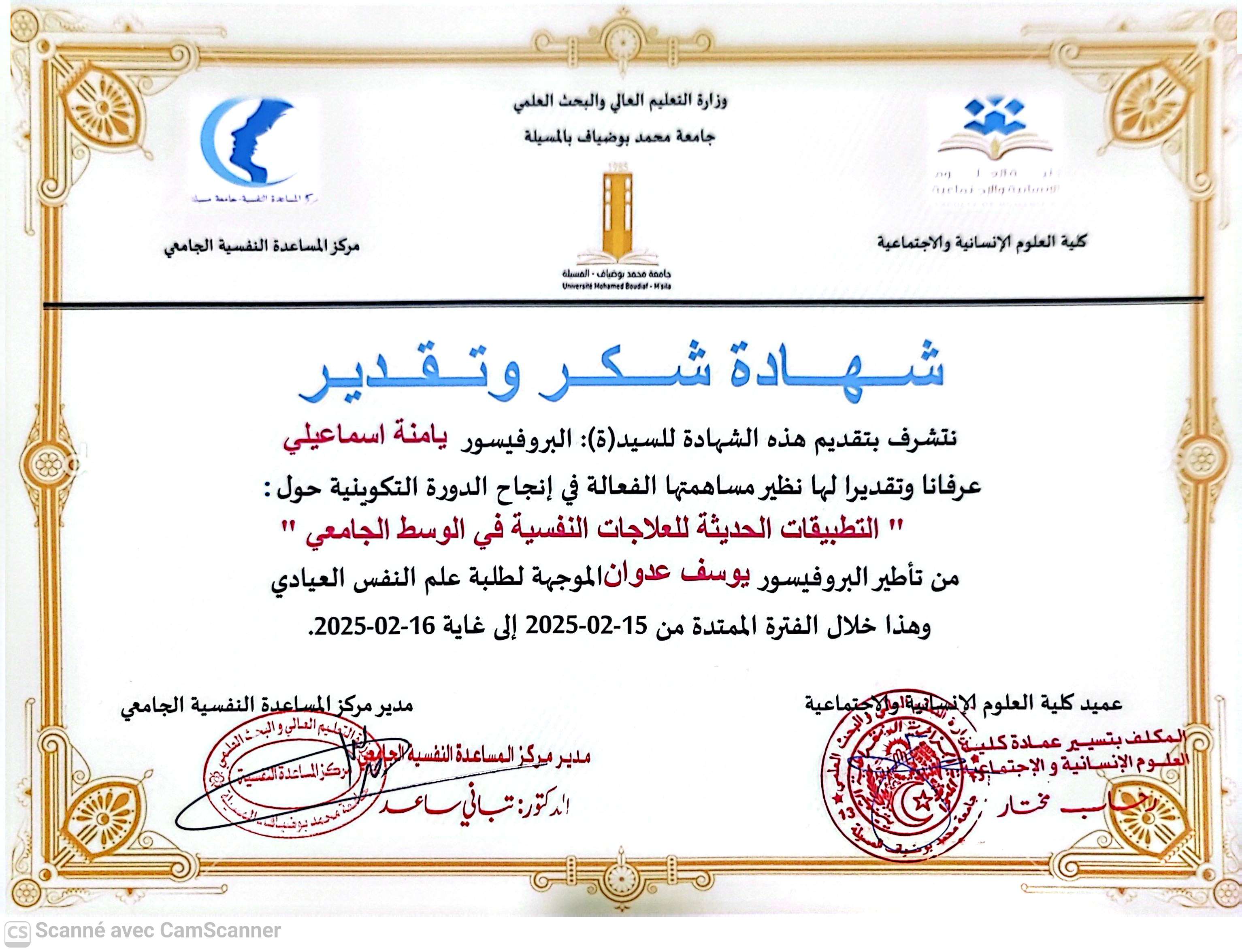 تكوين الاساتدة حديثي التكوين. in جامعة محمد بوضياف المسيلة