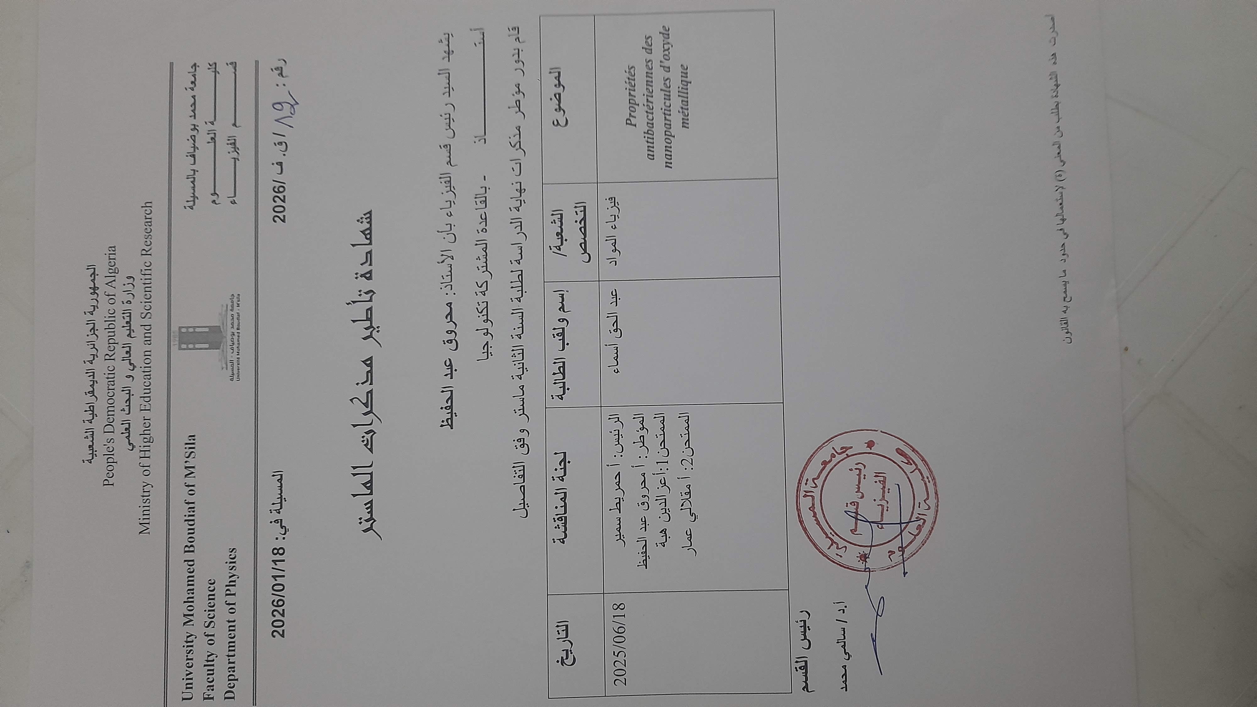 habilitation universitaire. in Laboratory of Materials Physics and Its Applications, Mohamed Boudiaf University of M’sila, 28000 M’sila, Algeria.