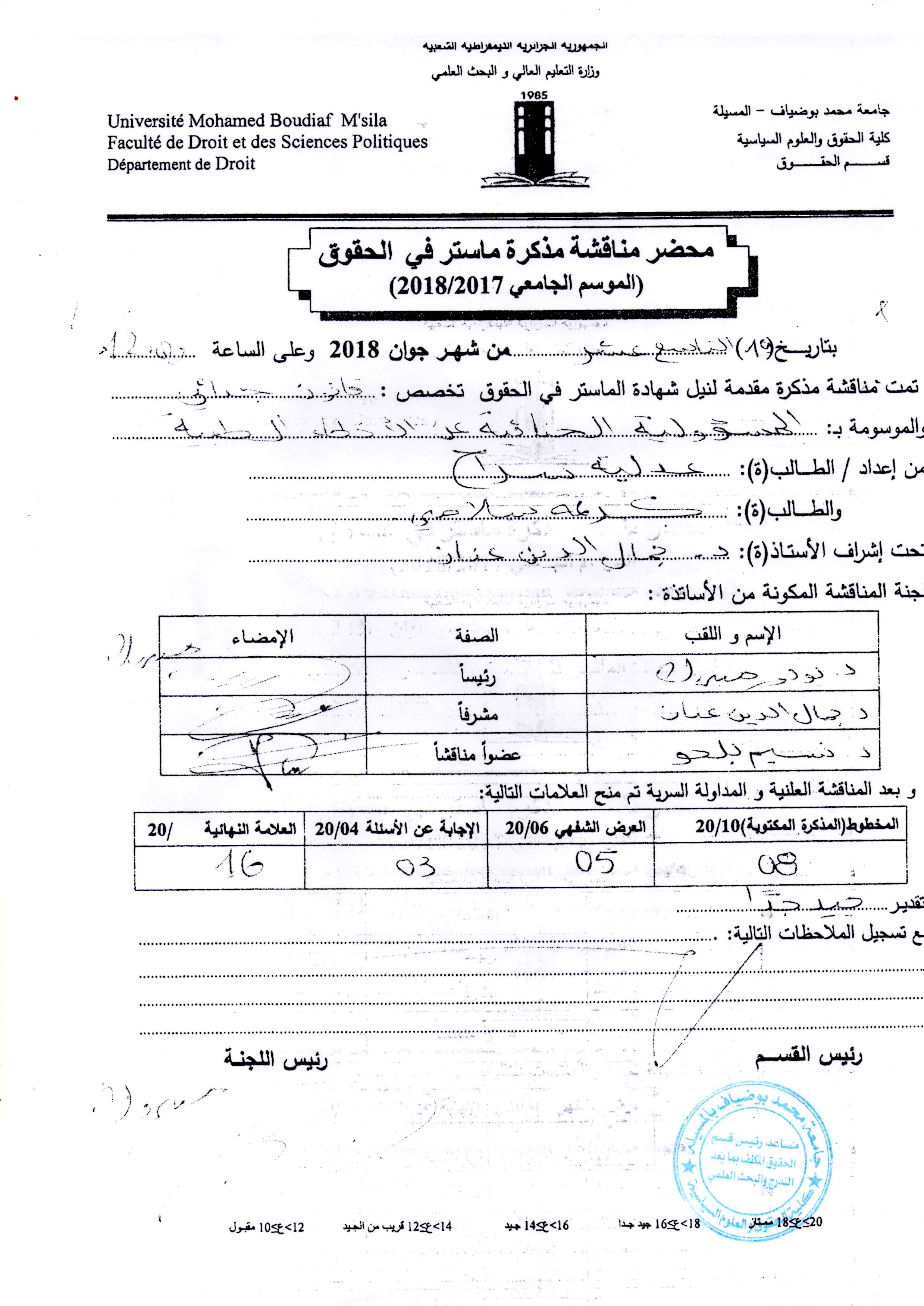 Anane DjamelEddine , ,(2018), موقف المشرع الجزائري والمقارن من مسألة تجريم الانتحار وما يرتبط به من أفعال,جمال الدين عنان,كلية الحقوق والعلوم السياسية جامعة المسيلة