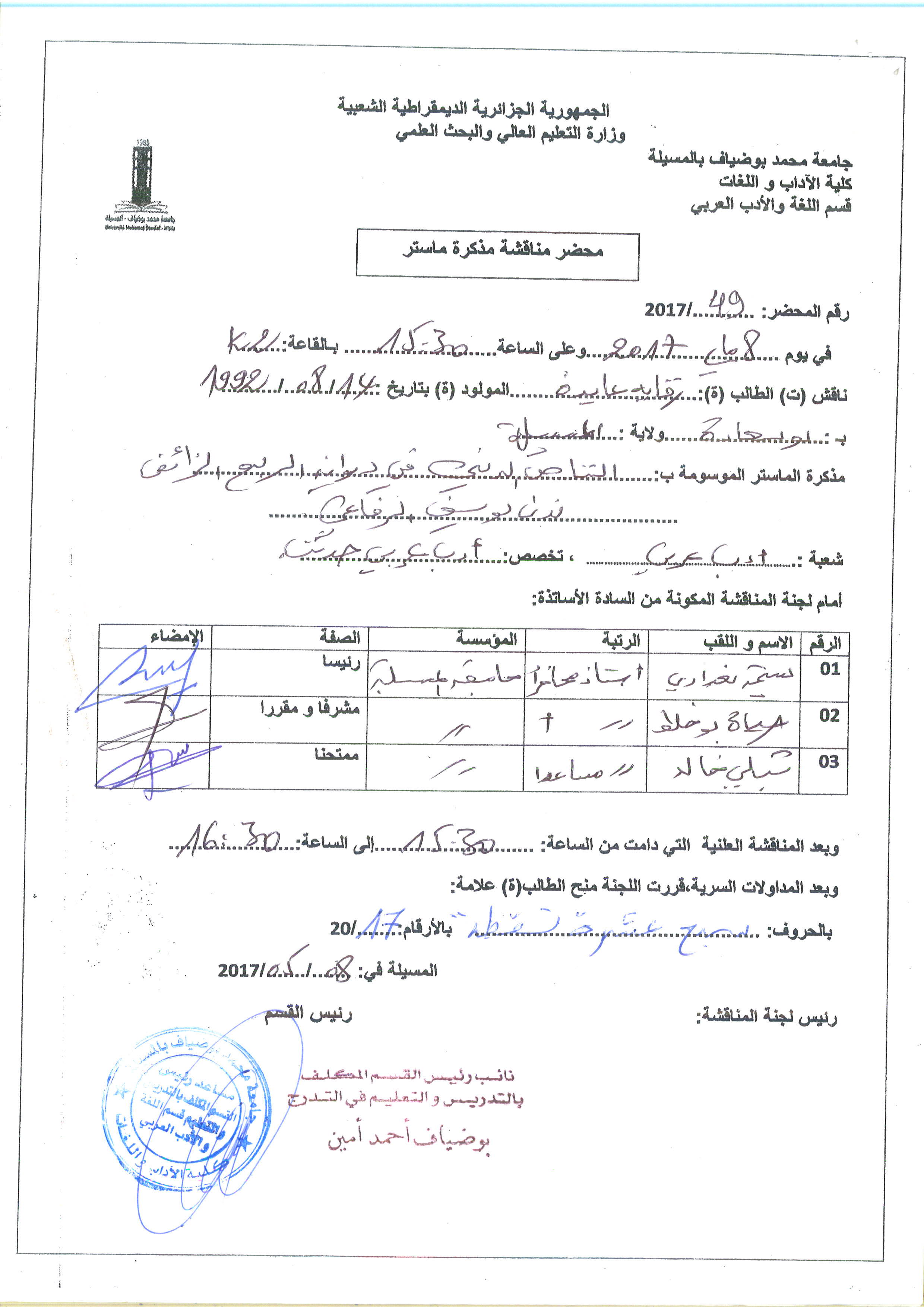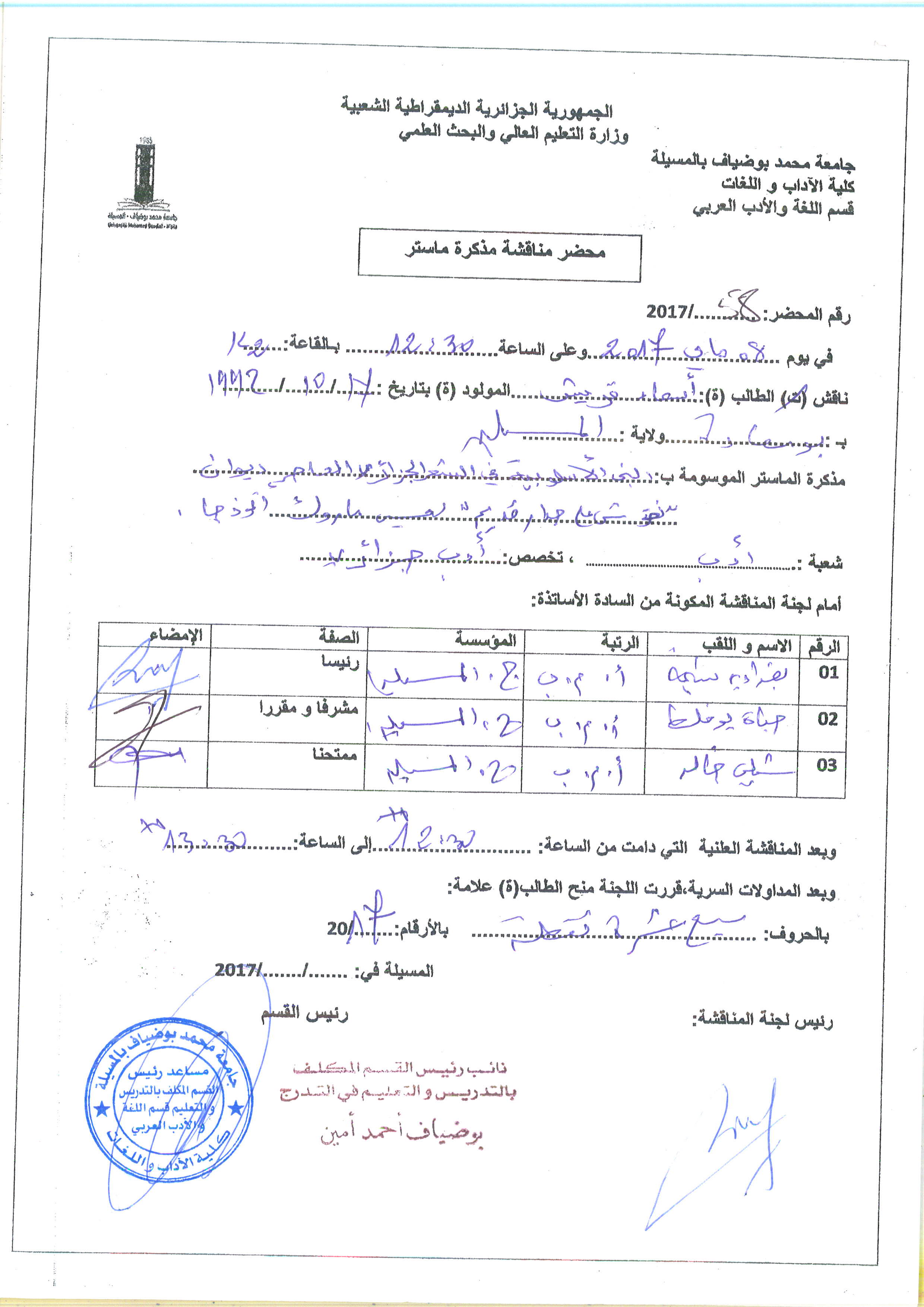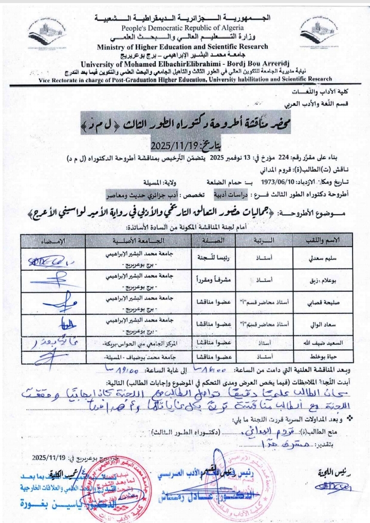 HAYAT Boukhalat , ,(2017-12-12), الخطاب النقدي عند محمد مصايف,واقع النقد الأدبي في الجزائر,جامعة زيان عاشور - الجلفة