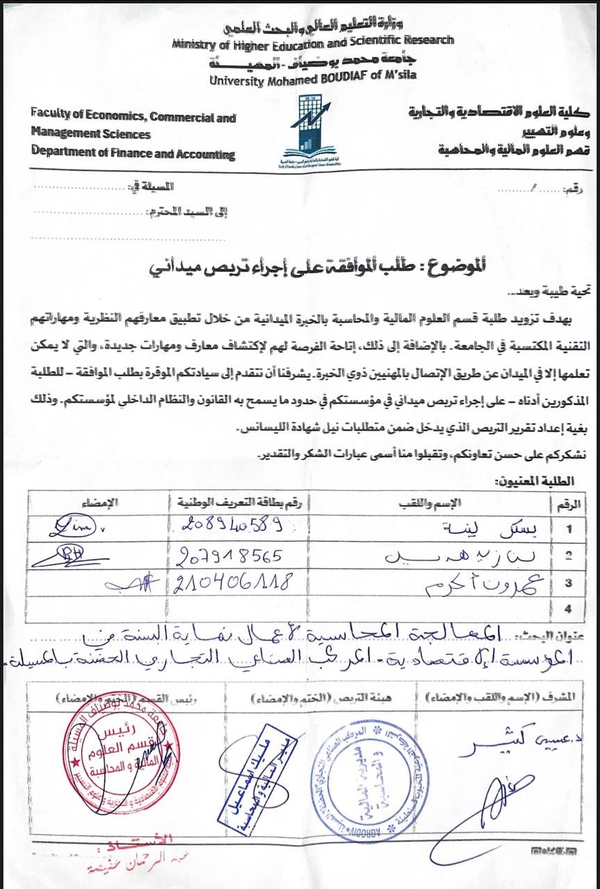 المعالجة المحاسبية لأعمال نهاية السنة في المؤسسة الإقتصادية المركب الصناعي التجاري الحضنة المسيلة